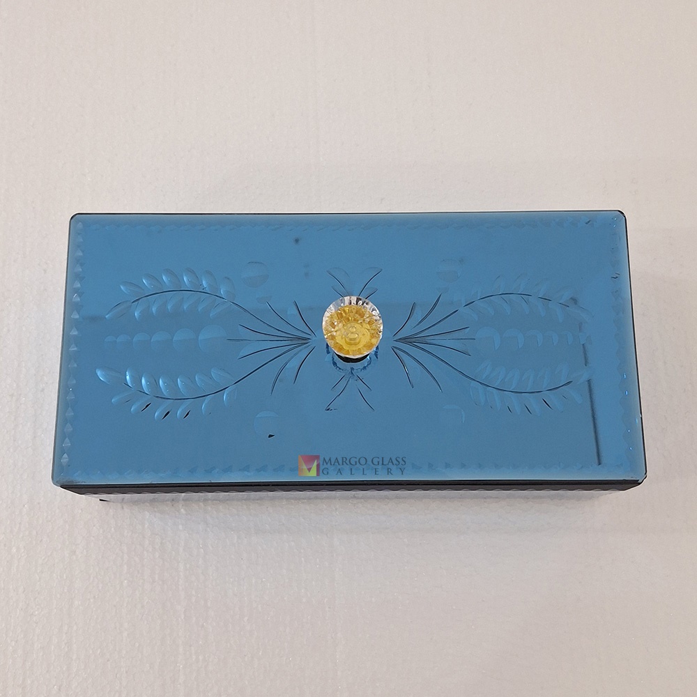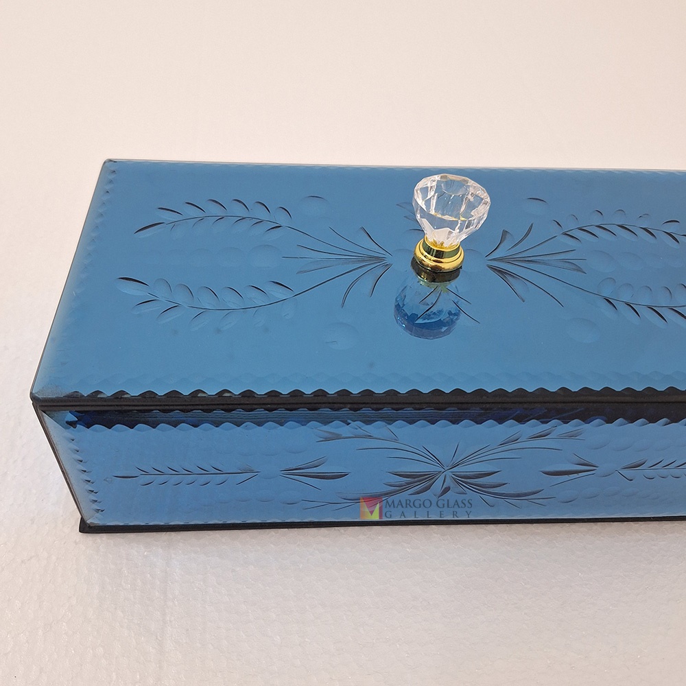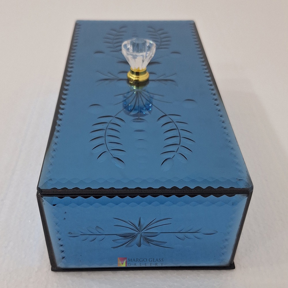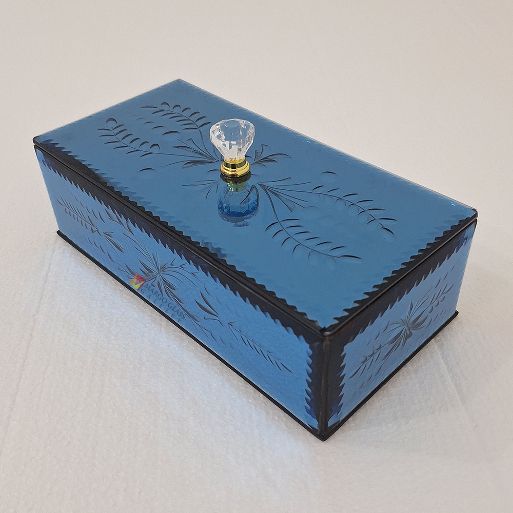 Box Snack Blue Carved 26x13x8 cm
